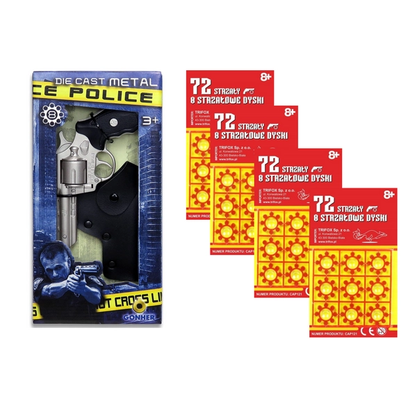 Gonher, Metalowy pistolet z obrotowym bębenkiem 8 strzałów, Mały Policjant 124/6, wiek dzieci 3+, policyjny, idealny prezent dla chłopca