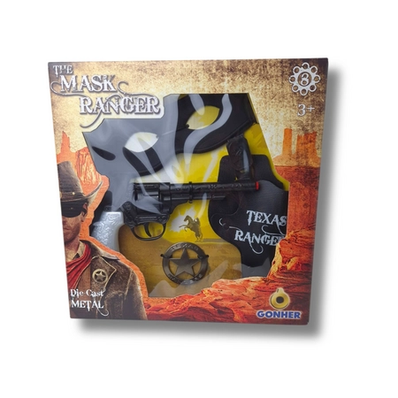 Gonher Zestaw Kowboja – Zamaskowany Strażnik Teksasu z Pistoletem na Kapiszony (8-strzałowym), Maską, Gwiazdą Strażnika i Kaburą