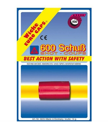 Taśmy z kapiszonami Wicke to doskonały wybór dla małych strzelców, którzy chcą cieszyć się bezpieczną i długotrwałą zabawą z pistoletami Gonher. Zestaw 600 strzałów zapewni godziny emocjonującej zabawy!
